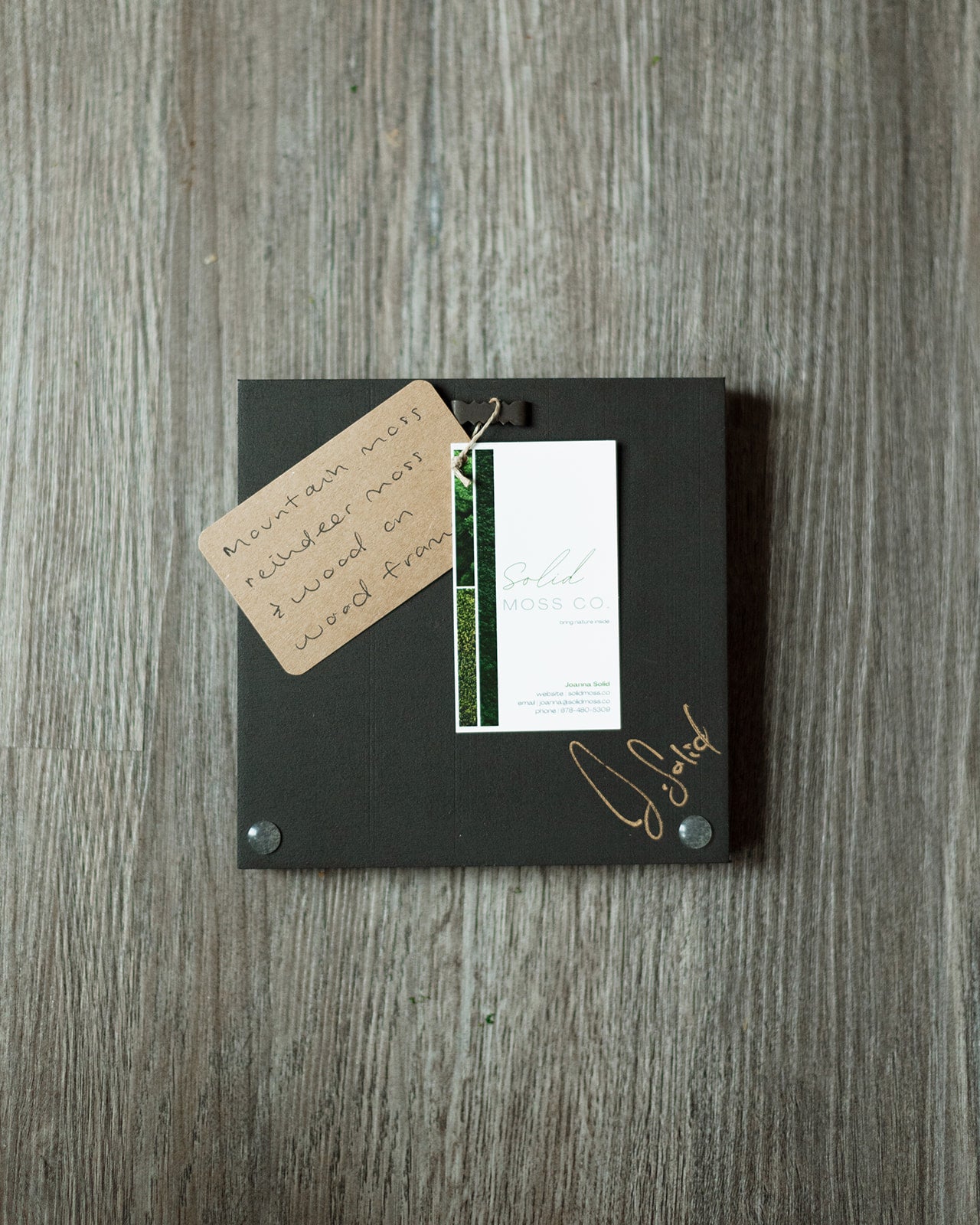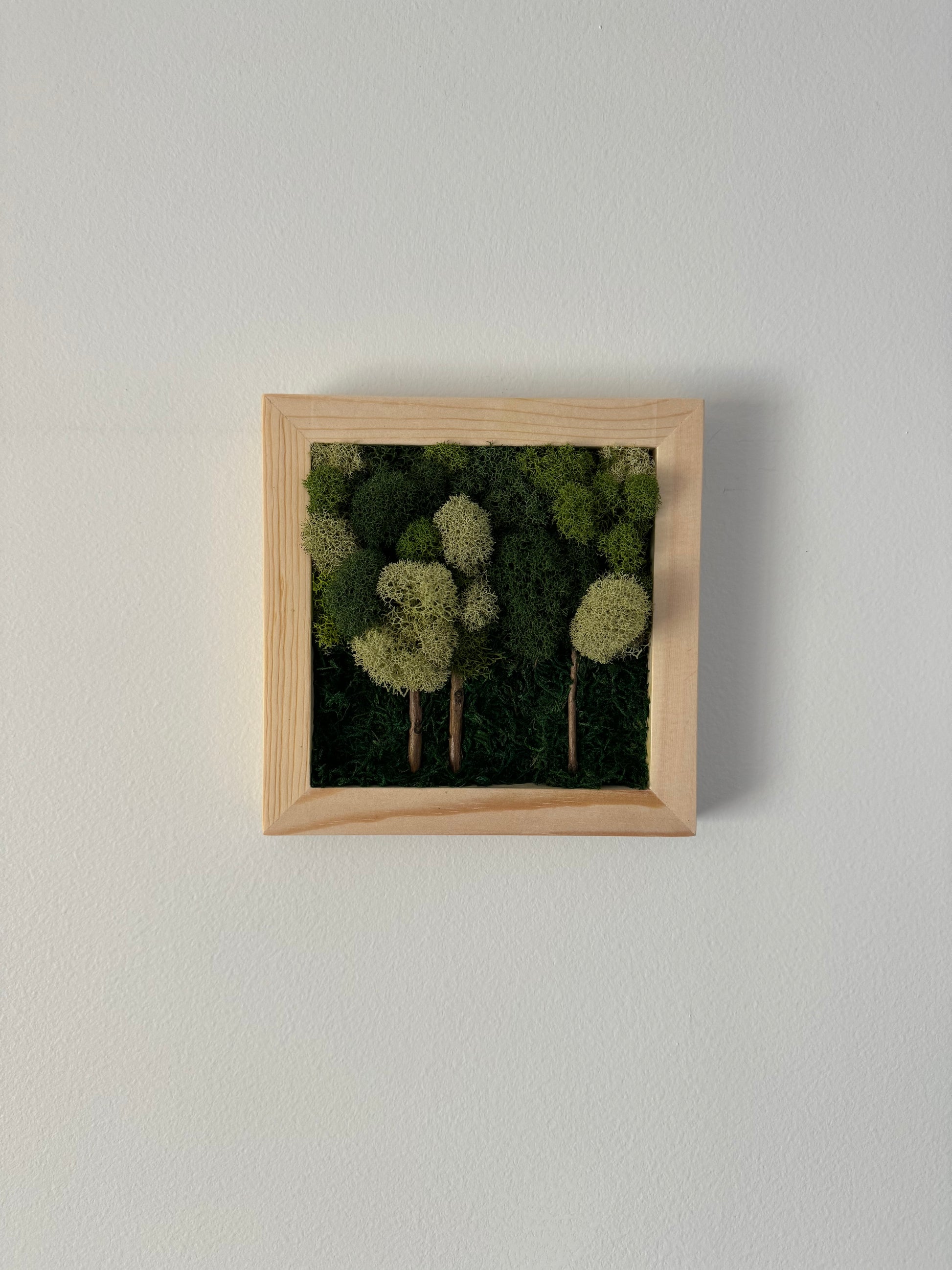 Preserved moss art on signed, ready-to-hang, square wood frame.
