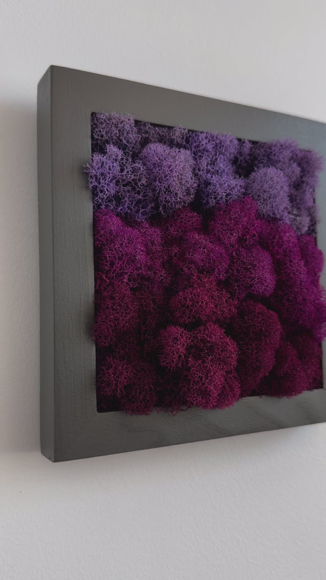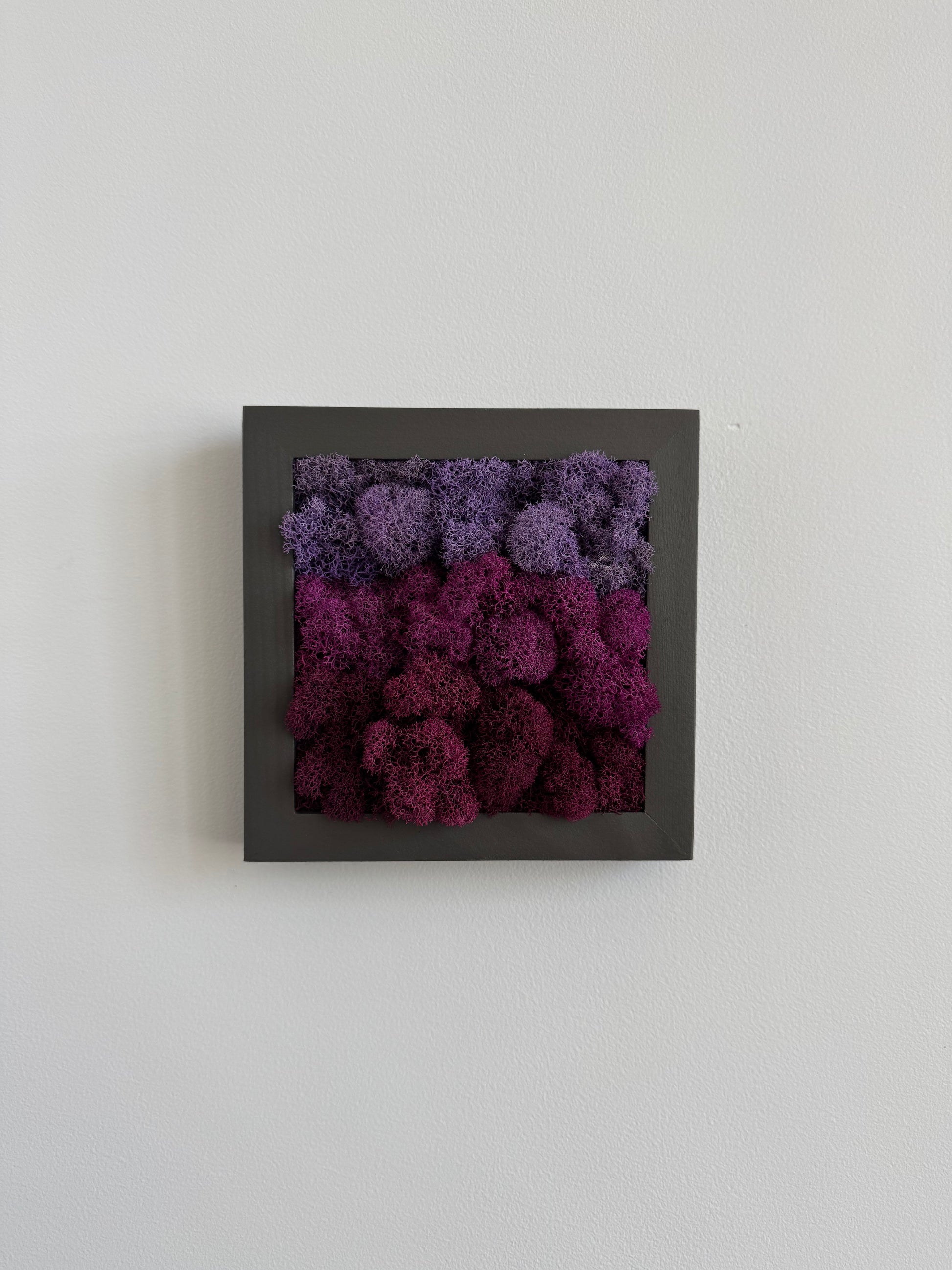 Preserved moss on signed, ready-to-hang, square wood frame.